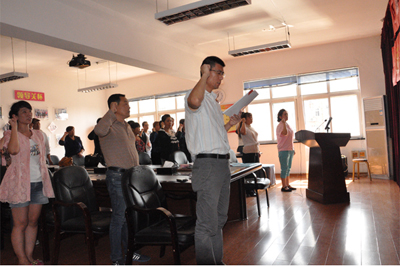 會議嚴格按照黨章和有關組織程序,進行了預備黨員轉正及黨員納新。大會聽取了石玉蓮、姜俊艷2位預備黨員與王靖瑩、李康業、王飛3名入黨積極分子的申請發言及入黨介紹人對發展對象的培養情況介紹。與會黨員分小組進行了討論和審議,黨員小組一致認為發展對象在平時工作中服從安排、積極主動、任勞任怨、不計較個人的得失,高質量的完成工作,生活中關心和幫助同事,自覺起到模范和表率的作用,符合中共黨員的要求,最終以投票表決的方式,同意石玉蓮、姜俊艷2名預備黨員按期轉正、接收王靖瑩、李康業、王飛3名入黨積極分子為中共預備黨員。