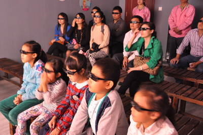 學(xué)生觀看3D短片《災(zāi)難警示錄》