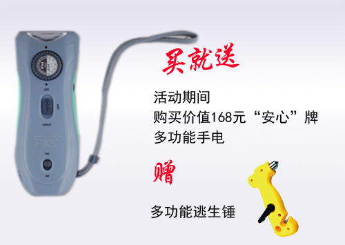 滿500元即可獲贈”安心“牌多功能逃生錘、醫療包、水系滅火器、打火線任意1件。
