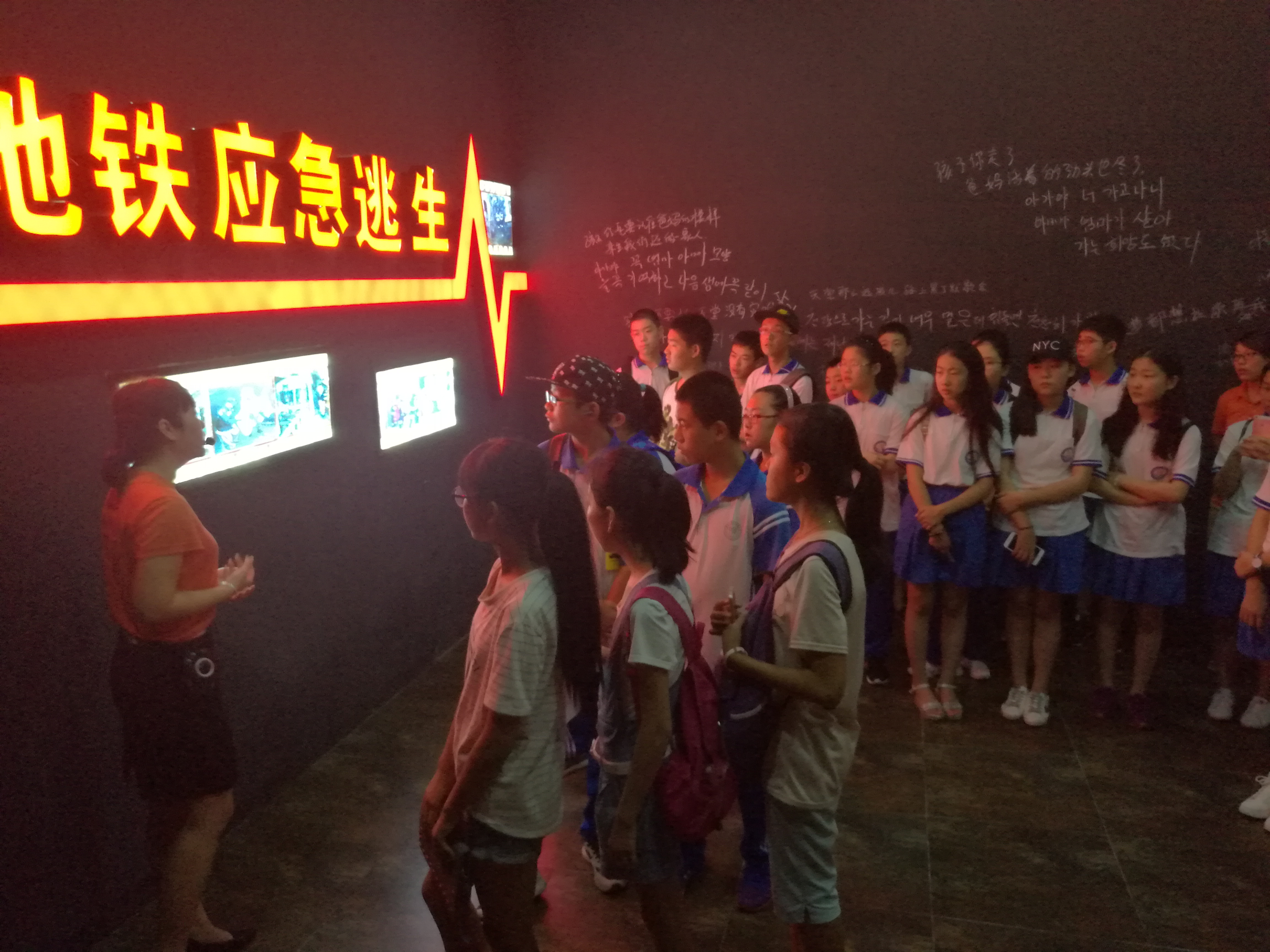 很多同學都坐過地鐵,但是很少有人意識到先學應急,再乘地鐵的重要性。直擊韓國大邱地鐵事故,燒毀的車廂,老人和孩子撕心裂肺的求助聲,遍地殘肢和鮮血,讓一幕幕觸目驚心的場景讓很多學生不禁淚灑體驗區。100米地鐵驚險逃生,在體驗中有效增強了學生們的地鐵應急自救技能。