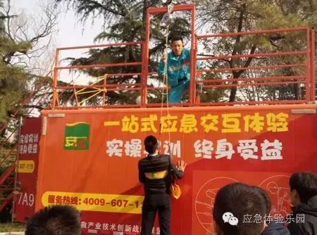 市民參加青島市應急安全教育培訓中心的消防體驗項目現場