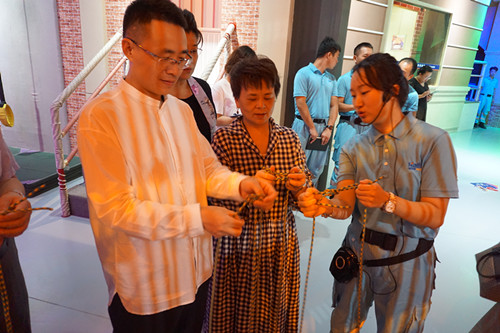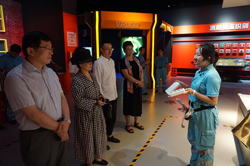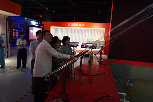 國家行政學(xué)院董事長張瑜一行實(shí)地考察了“火災(zāi)高層緩降逃生”、“3-6級(jí)地震”、“家庭安全隱患排查區(qū)”、“災(zāi)難街”,“119模擬報(bào)警設(shè)備”等特色應(yīng)急體驗(yàn)項(xiàng)目,切身體驗(yàn)了消防火災(zāi)滅火,對(duì)建設(shè)應(yīng)急體驗(yàn)場(chǎng)館高質(zhì)量服務(wù)“體驗(yàn)式”應(yīng)急安全培訓(xùn),增強(qiáng)群眾應(yīng)急知識(shí),技能發(fā)揮的作用給與肯定。此外,汪明副主任一行調(diào)研了培訓(xùn)中心特種繩纜、新國標(biāo)插座及應(yīng)急裝備研發(fā)、生產(chǎn)情況。