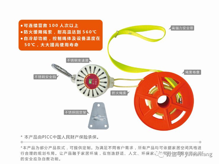發生火災時,千萬不要驚慌失措,高層樓宇逃生容易出現無路可逃、云梯高度受限等問題。如果火勢無法控制,運用專業高層樓宇逃生工具——“安心”逃生緩降器”,被困人員可迅速自行脫離險境,無須借助外援。