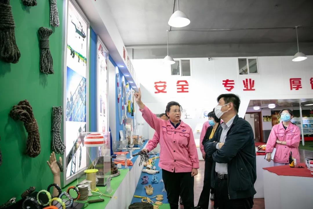 楊長軍對海麗雅集團聚力攻克關鍵技術、不斷研發新產品的做法給予了肯定,并就助力民營經濟轉型發展進行了深入交流。楊長軍指出,企業應重視戰略發展和品牌推廣,積極開拓特種材料市場,研發科技含量更高、市場更大的特種材料衍生品,結合微型芯片和人工智能,提高特種繩纜的智能化水平。同時,他建議海麗雅可借助資本力量,拓展應急安全產業,加快海麗雅發展壯大。