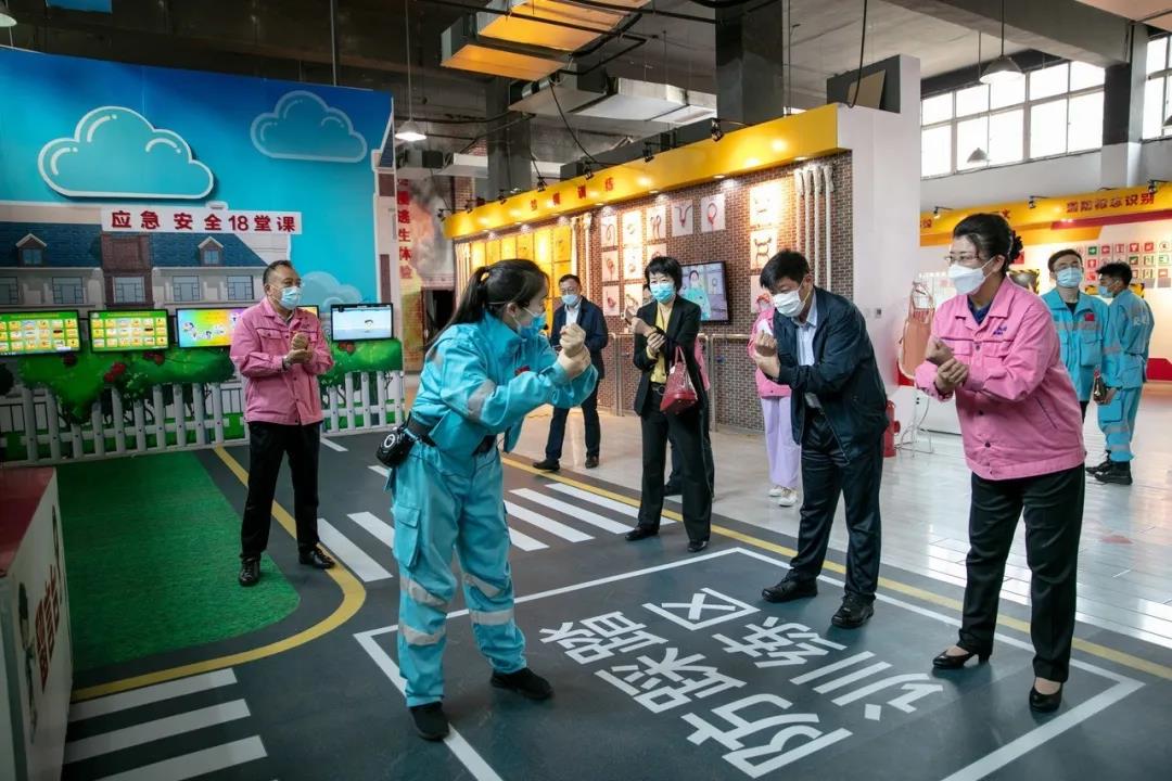 張旭明向楊長軍一行介紹了集團發展歷程、創新升級與人才團隊建設等情況。考察團現場體驗了集團應急安全培訓項目,并對公司特種繩纜的研發與應用有了深入的了解。