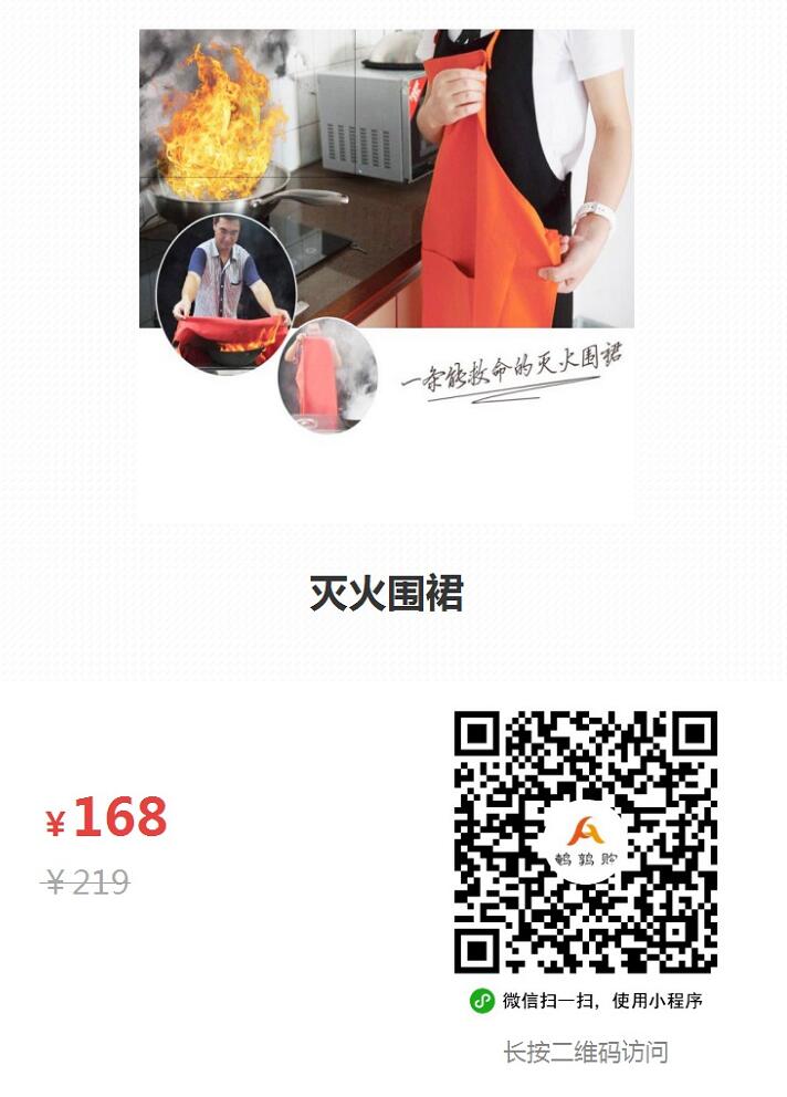 事情發(fā)生后,很多鄰居咨詢王阿姨您的滅火圍裙哪里買的,現(xiàn)在小編就把它推薦給大家。