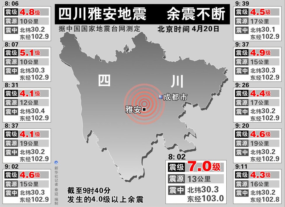 四川雅安蘆山地震已造成192人死亡 11470人受傷
