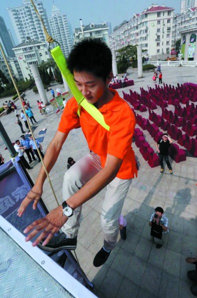 昨天上午,不少市民在專業(yè)人員指導(dǎo)下學(xué)習(xí)樓宇救生緩降器等先進(jìn)家庭消防安全器材。