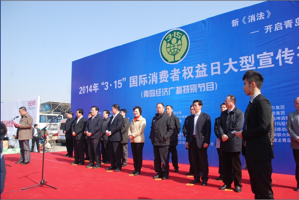 3月15日,公司應邀參加了由青島市工商局等部門在麥德龍商場舉行的2014年“3•15”國際消費者權益日大型宣傳咨詢活動。市人大常委會副主任吳淑玲、市政協副主席郄晉生、市委宣傳部副部長魏勝吉等出席了活動開幕式。