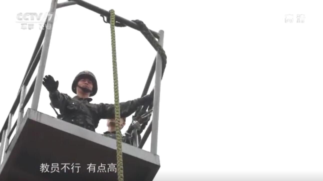 直升機索降是軍事行動中,經(jīng)常運用的課目,站在十米高的平臺上往下看,就是這種感覺,但是戰(zhàn)勝恐懼心理,是掌握直升概索降的第一步。