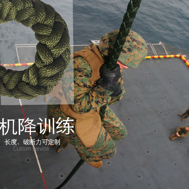 每個特戰(zhàn)隊員滑出機艙,安全索降到著陸區(qū),都是對“蛟龍牌”機降繩質(zhì)量的考驗與信任。青島華凱海洋科技有限公司是機降繩索生產(chǎn)廠家。