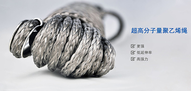 超高分子量聚乙烯纖維材料制作的越野絞盤繩,比同直徑鋼絲絞盤繩強(qiáng)度大,而且重量?jī)H為鋼絲繩的1/8,延伸率低,強(qiáng)度高。