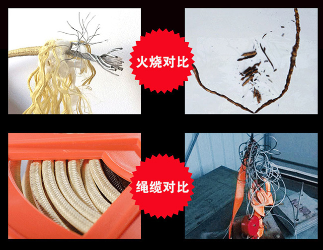 鋼芯繩由外層阻燃材質和鋼絲內芯組成,耐火耐高溫。